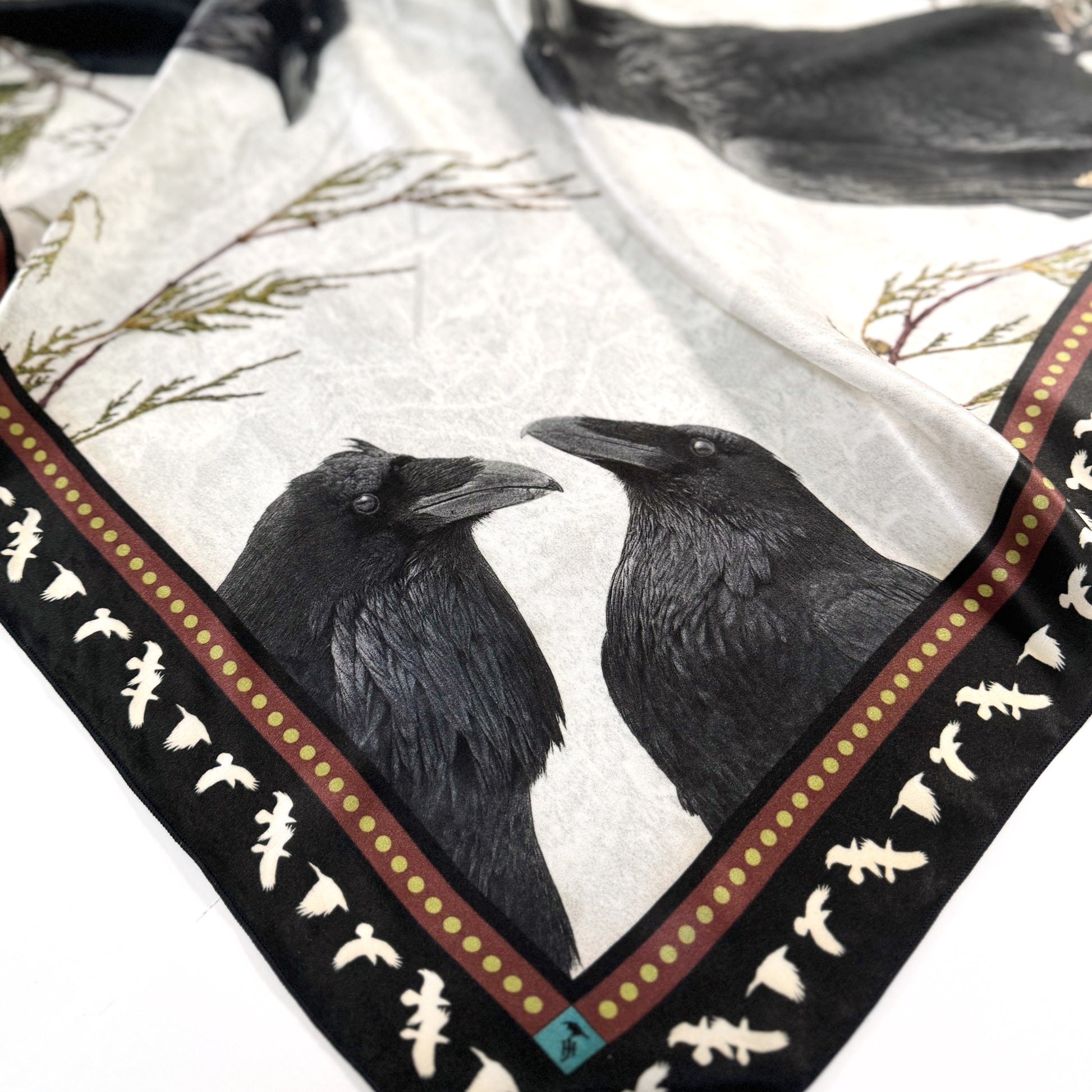 RAVENS ON CEDAR — 26-inch Square Scarf