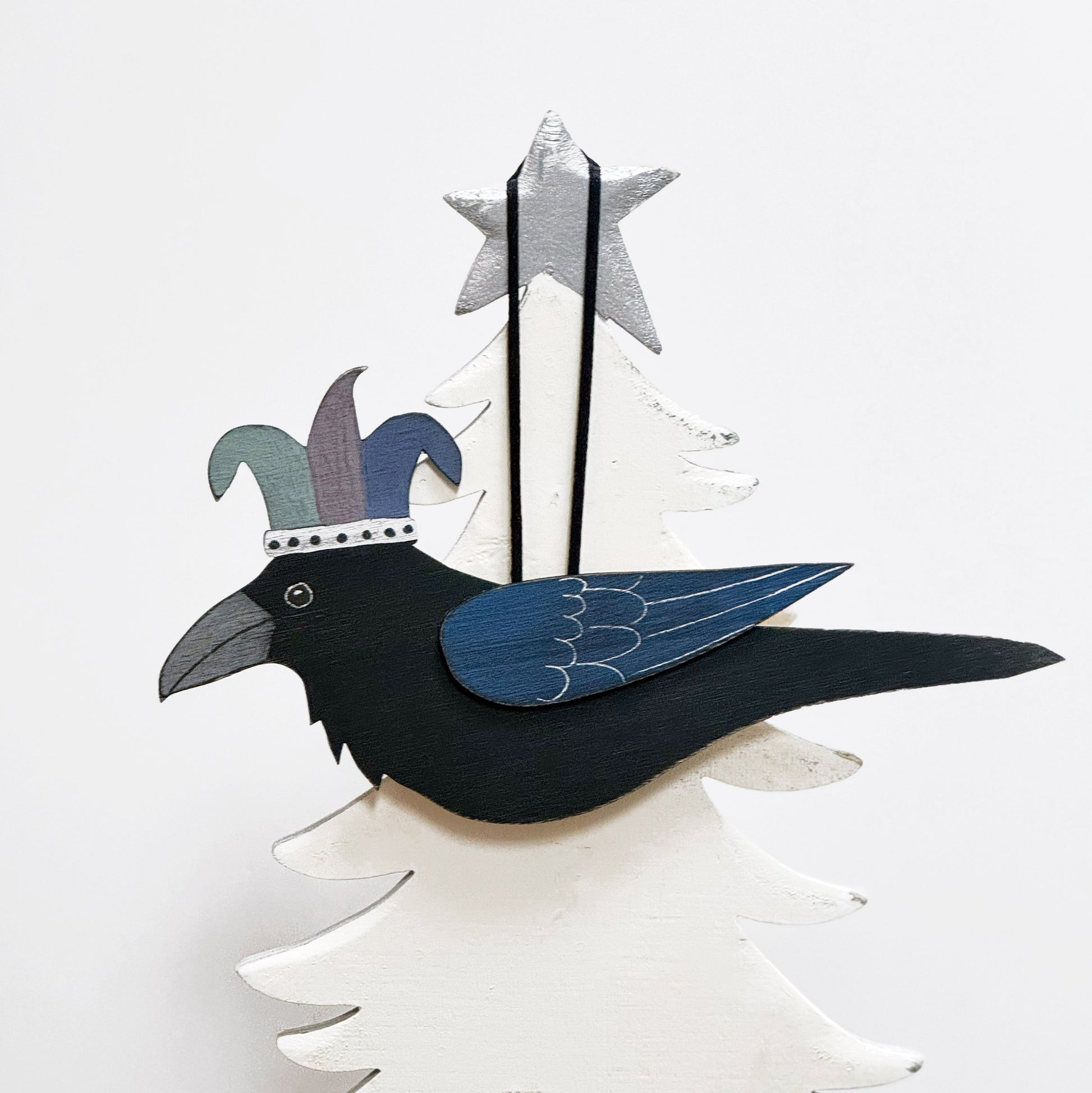 JESTER RAVEN 2 — Hand-Painted Wooden Raven Hanging