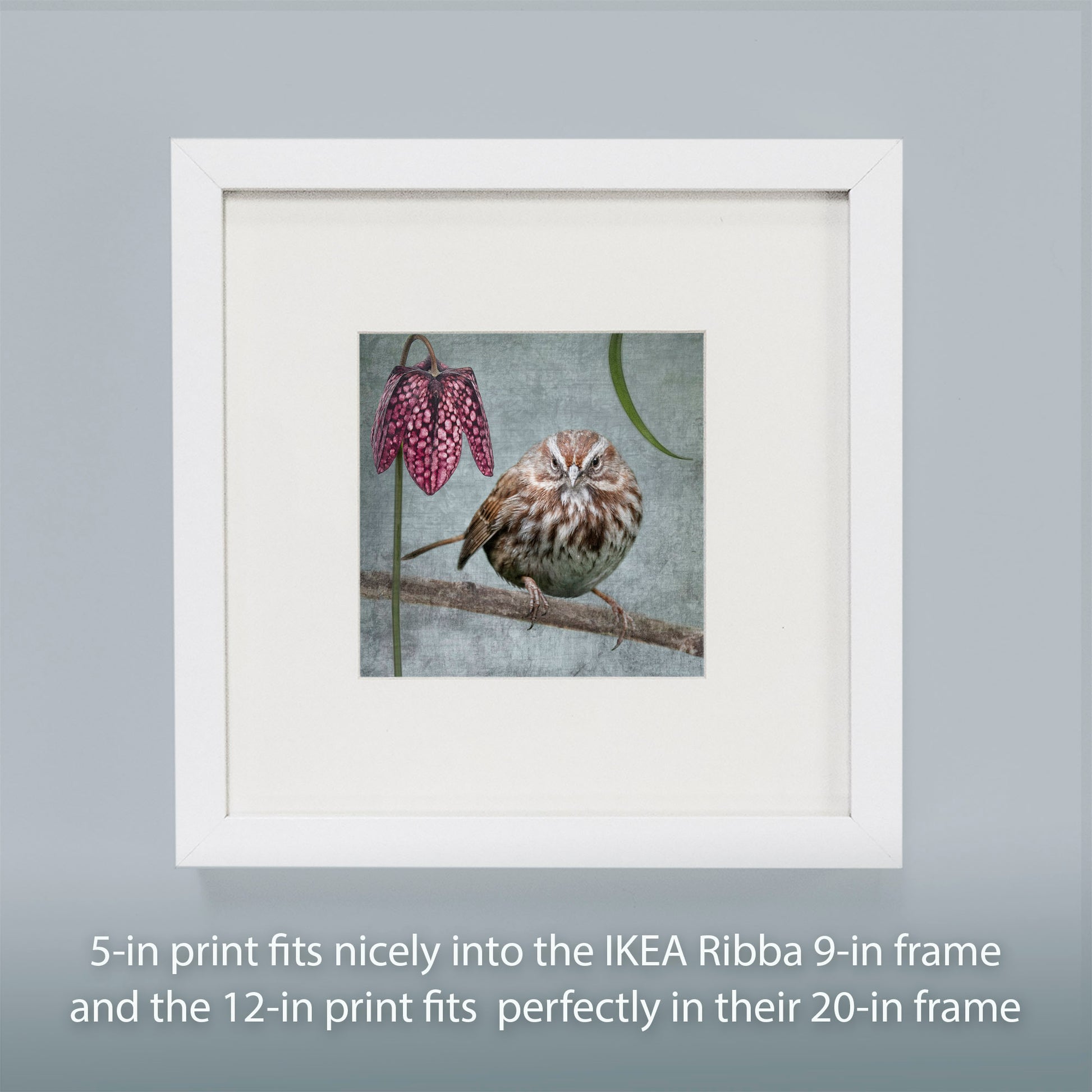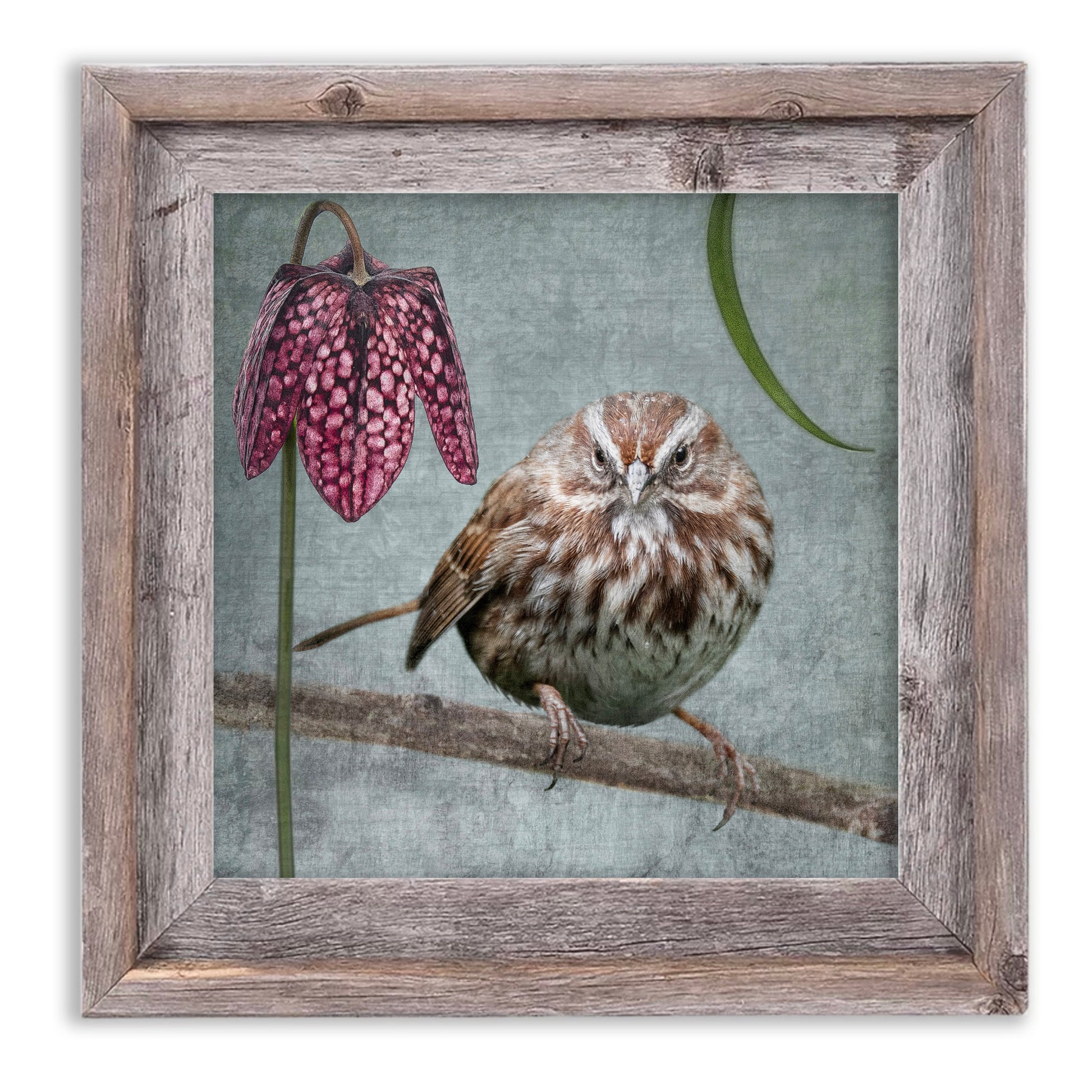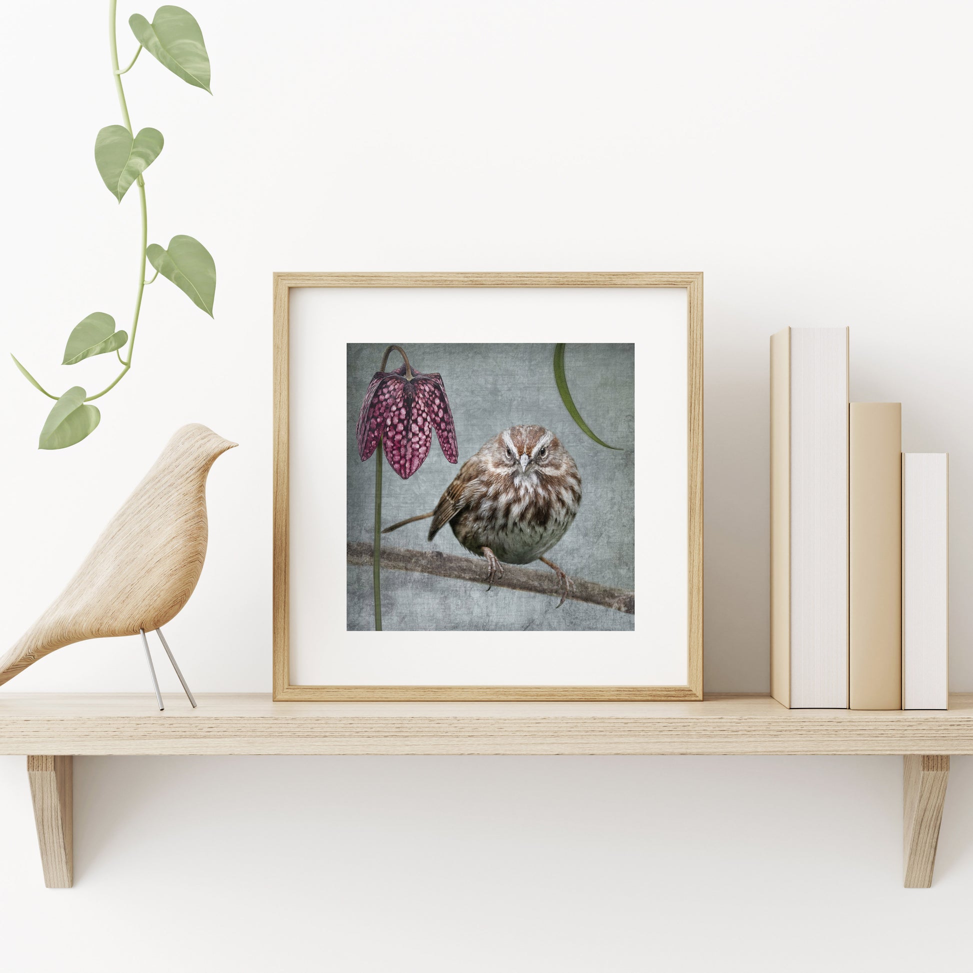 SONG SPARROW WITH FRITILLARIA - Fine Art Print, Garden Birds Series