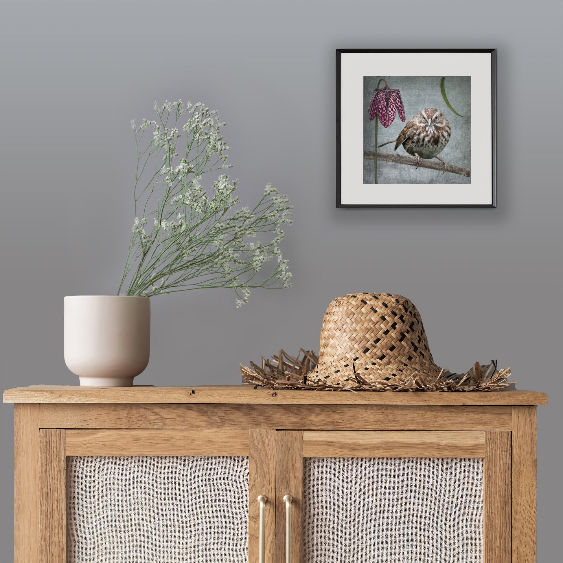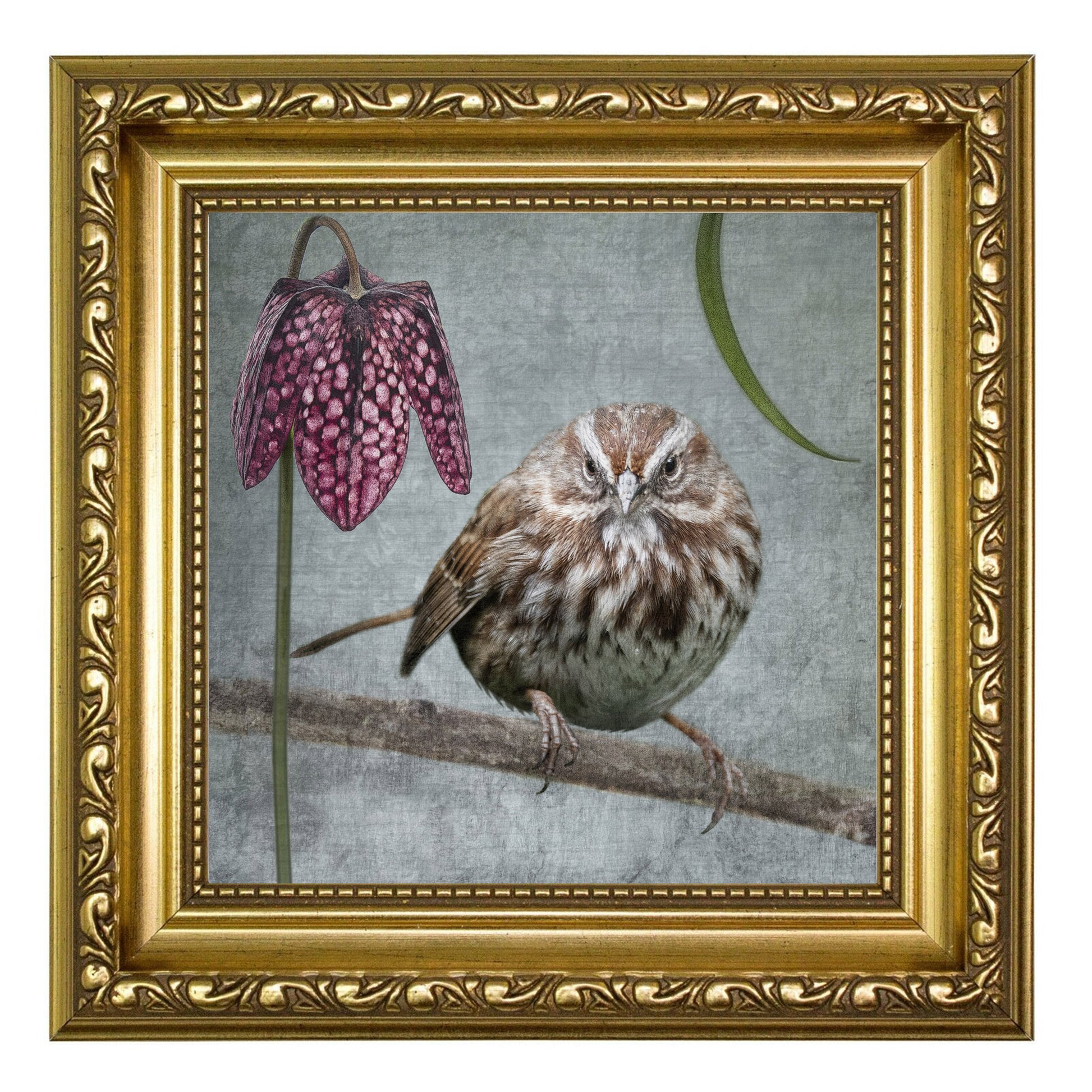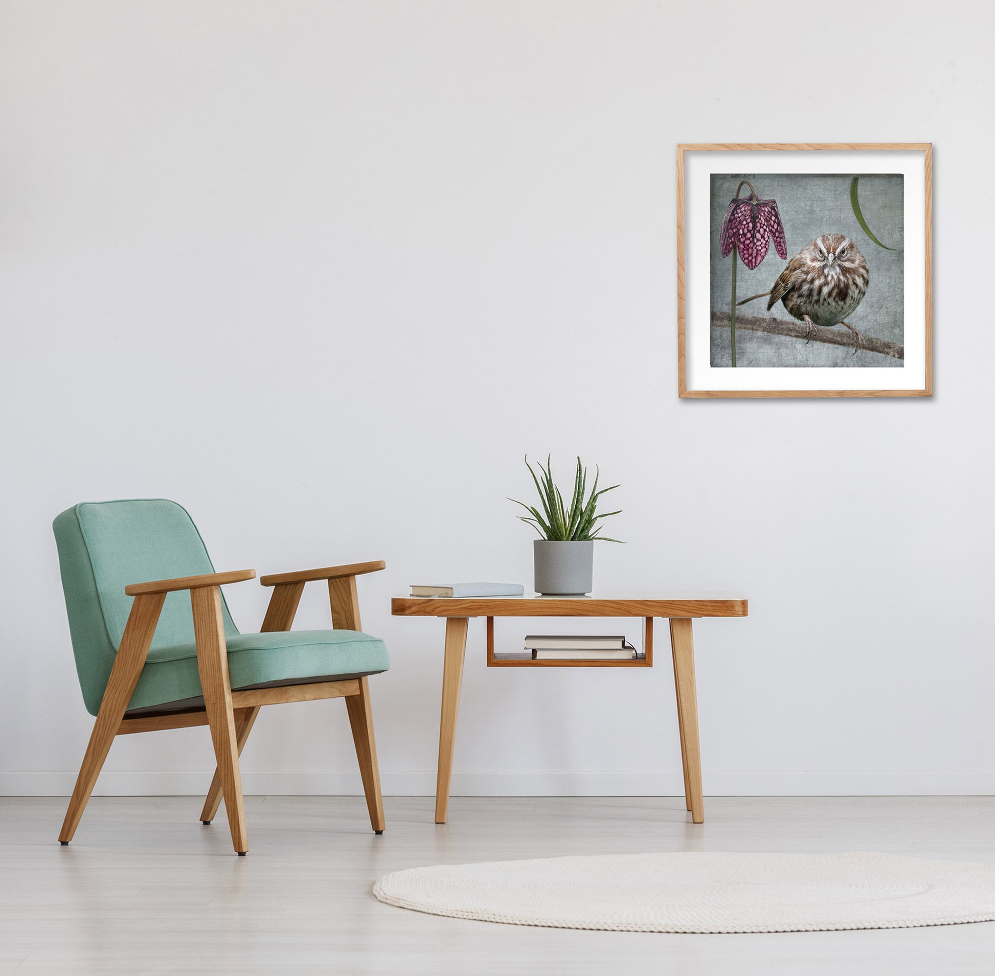 SONG SPARROW WITH FRITILLARIA - Fine Art Print, Garden Birds Series